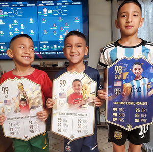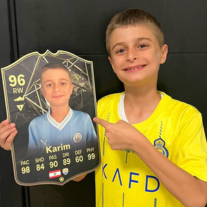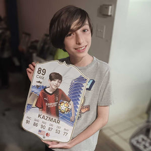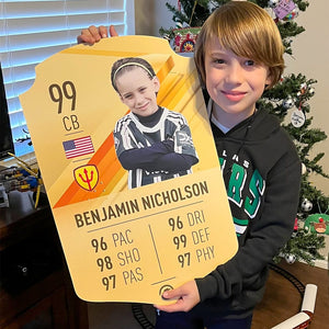 Add your own photo, name, club, and stats with our easy online tool. Our expert designers will do the rest!