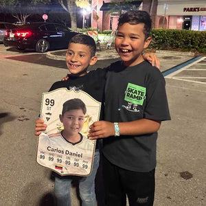 When it comes to personalising your card, the basic steps are to upload a photo and add a name to your card. Then you’ll add details like your player’s position and skill ratings out of 99 for each football skill shown on the card. Our online card builder makes this really easy. And if you aren’t a football card expert, don’t worry!